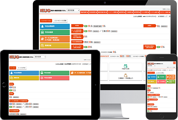 今回の就労支援事業への対応に伴い、国保連請求データの作成はもちろん、アセスメントや個別支援計画作成、サービス提供記録の作成や作業に基づく工賃明細書の自動発行、利用者様専用マイページでの利用予定やお知らせ配信にも対応し、就労支援事業所を運営される皆様にとっても、より使いやすいシステムとなるよう対応しております。